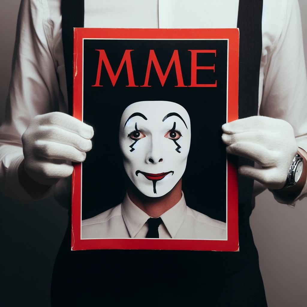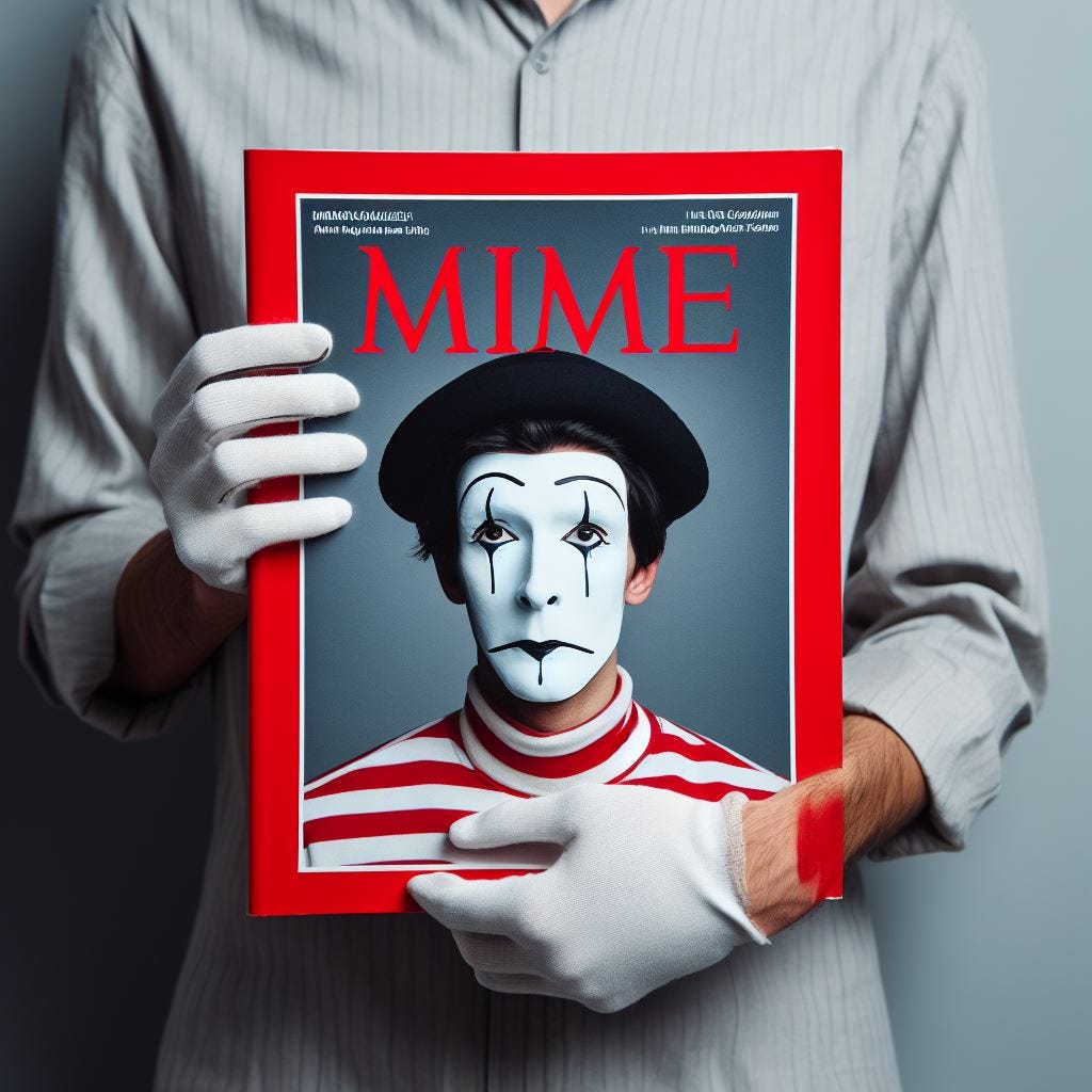 That one job was to create “a picture of a mime holding a copy of ‘Mime Magazine,’ styled like Time Magazine, that had a picture of a mime on it.”
