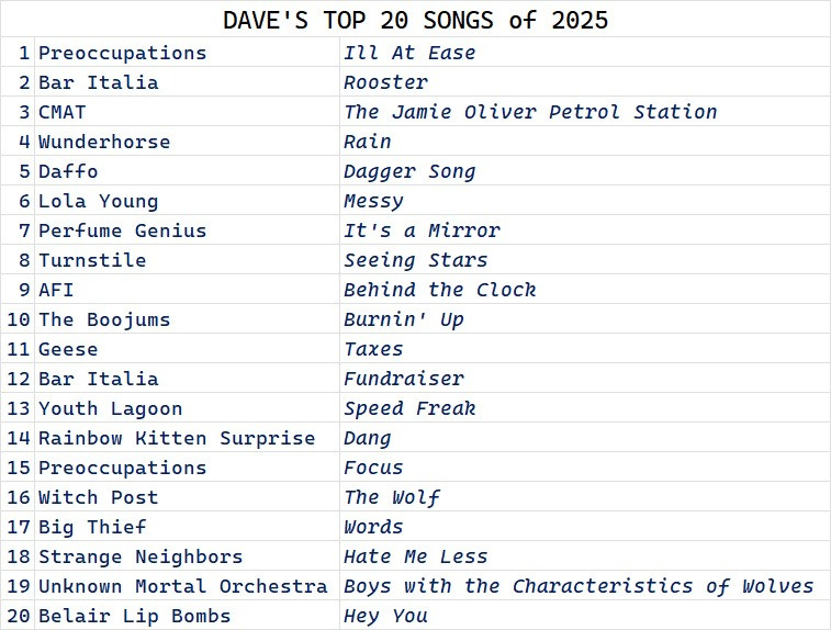 Listening to: The Top 20 Songs of 2025 (According to Dave)