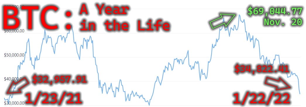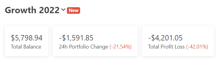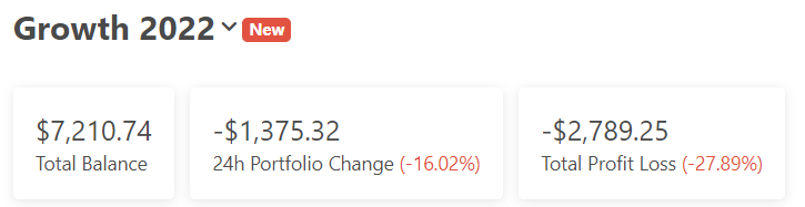 On the Metacoin site just yesterday, we talked a little bit about our 2022 Growth Portfolio. (We figured out a way to track it on CoinGecko’s site and that’s kinda fun.) What’s not kinda fun was that, when we shared the post on Friday morning, January 21, here’s the figure from our theoretical portfolio of ten tokens: