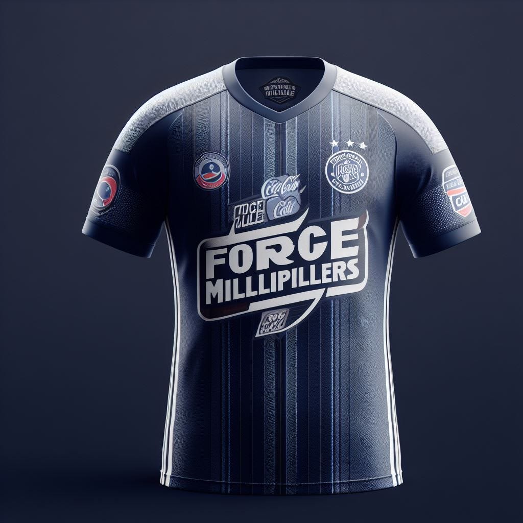 Then there was the prompt for this “Create a uniform for a team called the ‘Force Multipliers’ and with jersey sponsor ‘Cola.’”